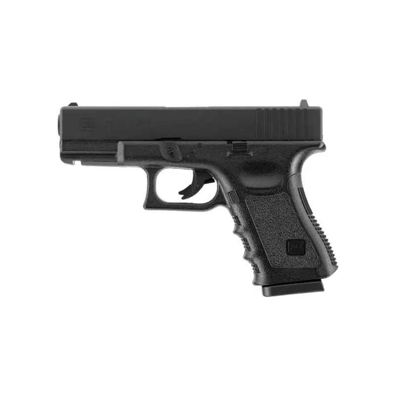 Въздушният пистолет GLOCK 19 4,5 mm (.177) CO₂ е лицензирана реплика на популярния боен пистолет GLOCK 19, произведена от немската компания Umarex. Този модел е предназначен за развлекателна стрелба и тренировки, като предлага реалистично усещане и лесна употреба.